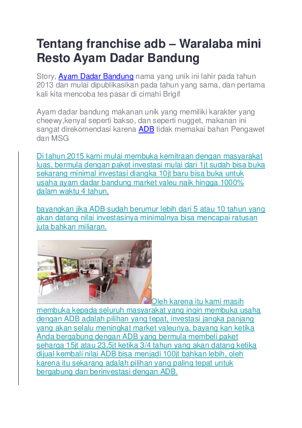 Terlebih saat ini kekuatan pembelanjaan masyarakat kelas menengah di Indonesia sudah berkembang pesat sehingga bisnis franchise semakin diminati. Biaya tersebut dibayarkan untuk lisensi atau hak menggunakan merek yang diwaralabakan selama jangka waktu waralaba dan hak untuk menggunakan pedoman operasional yang telah disepakati. Meskipun demikian franchise fee atau royalty fee harus.