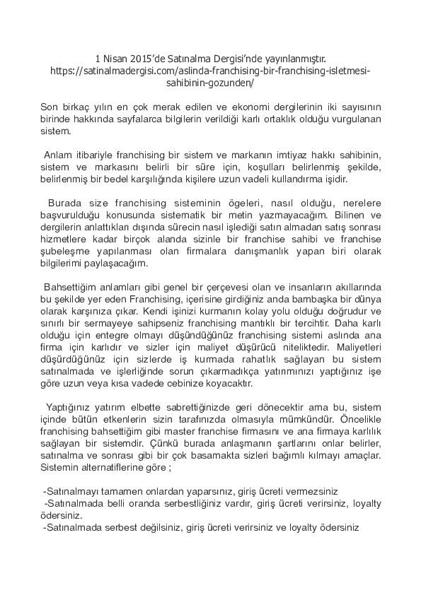 Berbeda dengan bisnis sendiri sistem waralaba atau franchise adalah sebuah sistem bisnis yang telah dilengkapi manajemen bisnis yang matang. Pada awal pendirian bisnis franchise pihak pemilik franchise-lah yang paling diuntungkan. Franchise secara umum dapat diartikan sebagai sistem bisnis yang.